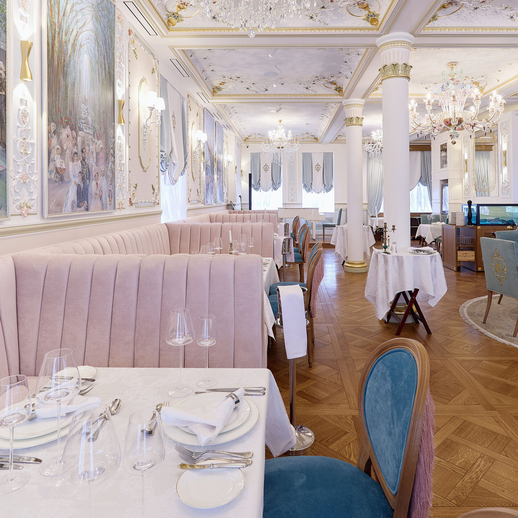 Переходим на второй этаж в премиум-ресторан в стиле самарского дворянства девятнадцатого века. К поразительным интерьерам добавляем свежие морепродукты – устриц, лобстера или краба, сюда же дюжину раков по-бониерски, осетровую икру с пшеничными блинами, стейк миньон с фуагра. Перечислять все это роскошес-тво можно бесконечно, но лучше прийти и все увидеть и попробовать самим.