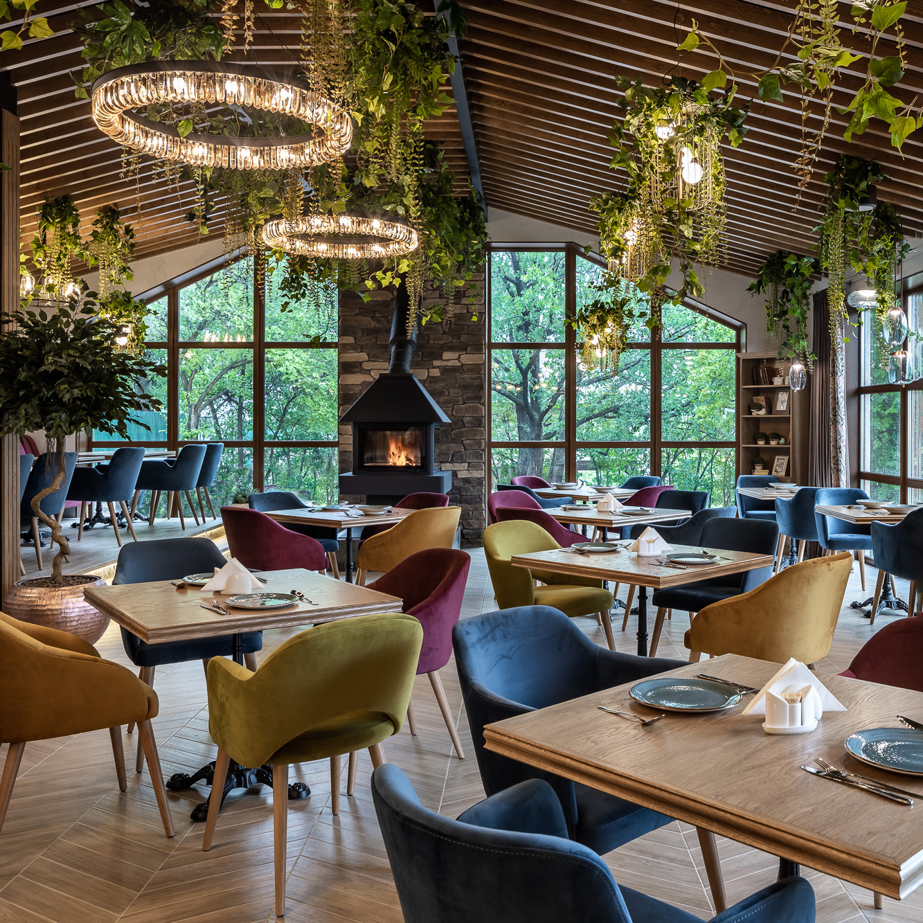 Пока взрослые делятся ощущениями от авторской кухни, ведя светские беседы в зале с прованским интерьером, дети могут заняться своими делами в игровой комнате. Вечером уюта добавляет настоящий дровяной камин. Те, кто любит пространство, ценит природную красоту и пейзажи, будут комфортно себя чувствовать на летней веранде ресторана: тень деревьев, пение птиц и умиротворяющее Белое озеро создадут неповторимую атмосферу. Здесь идеально наблюдать закат в компании семьи или друзей.
